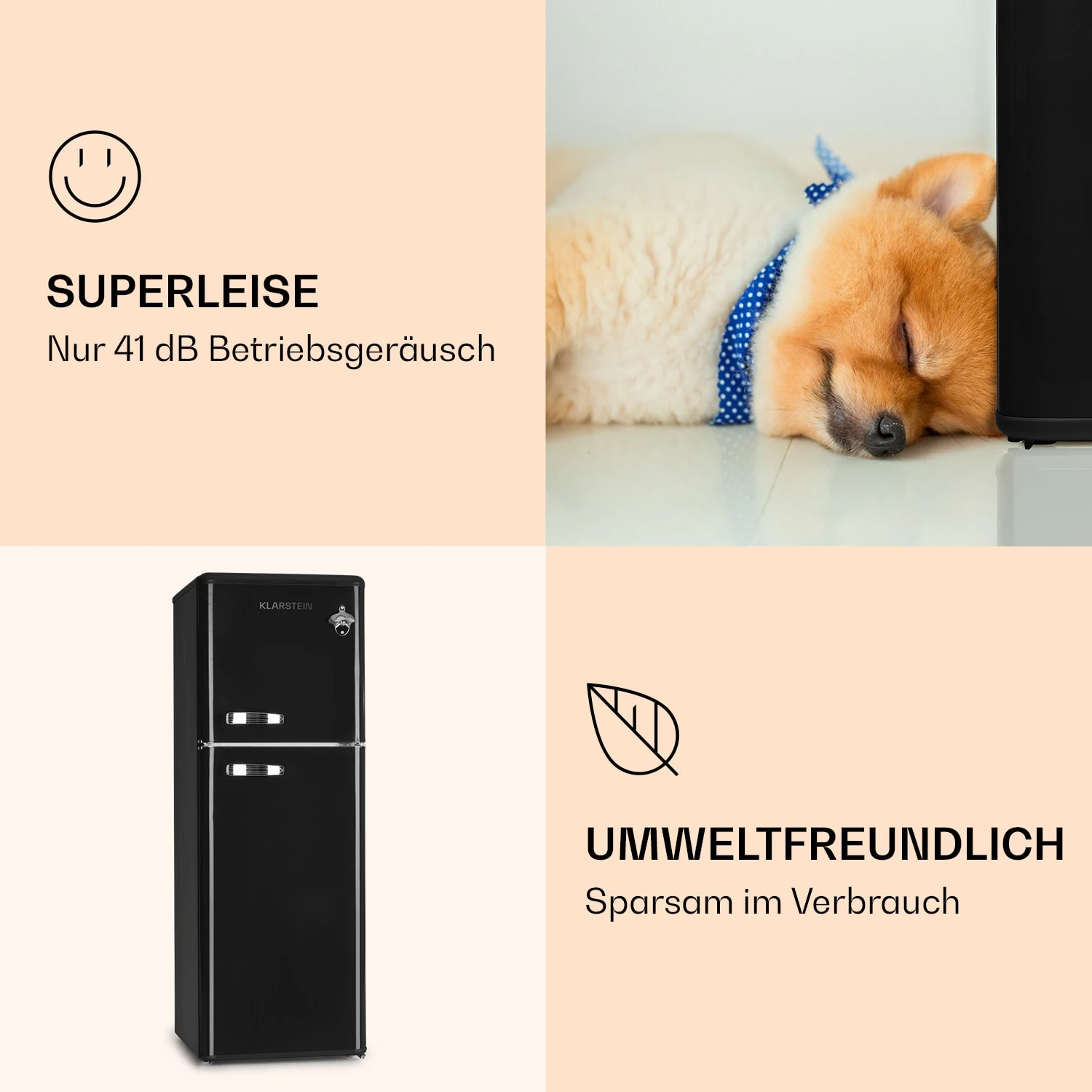 - Betriebsgeräusch: 41 dB max.