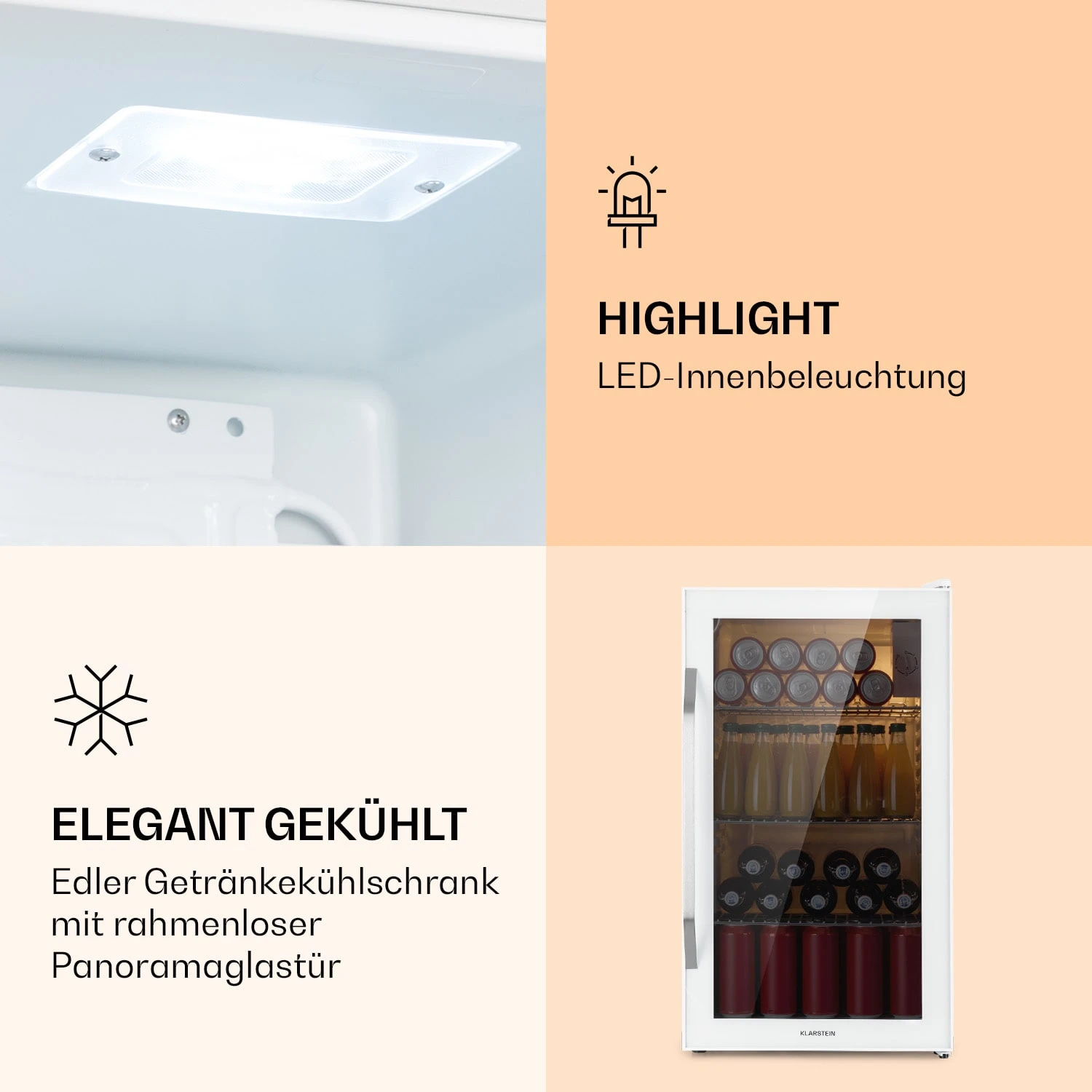 Der Klarstein Beersafe XXL Quartz Kühlschrank bringt Getränke auf Erfrischungstemperatur.