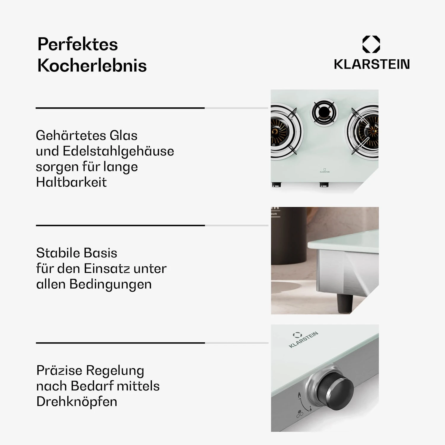 Leistungsstarker Campingkocher: Tragbarer Gaskocher mit 3 Brennern und einer Gesamtleistung von 8,45 kW für schnelles und effizientes Kochen
