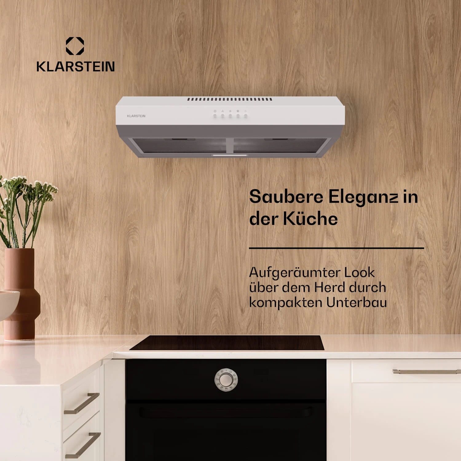 Platzsparend: kompakte Dunstabzugshaube geeignet zur Installation unter Küchenhängen