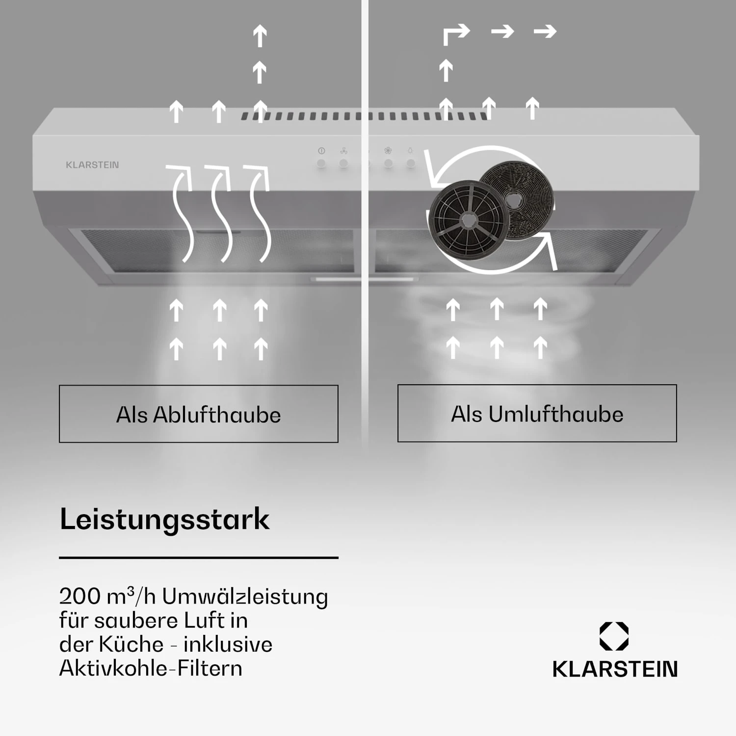 Einfache Umrüstung: inklusive Aktivkohlefiltern zur Nutzung als Umlufthaube