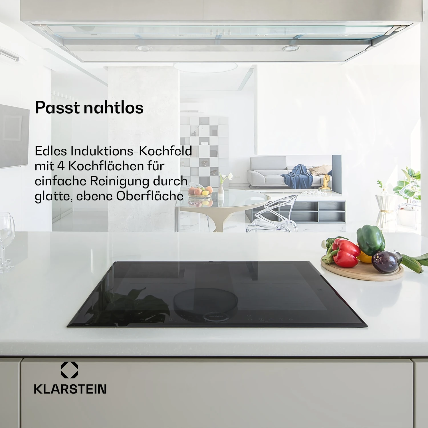 Einbau in die Küchenzeile: edles Induktionskochfeld mit Glaskeramik-Oberfläche
