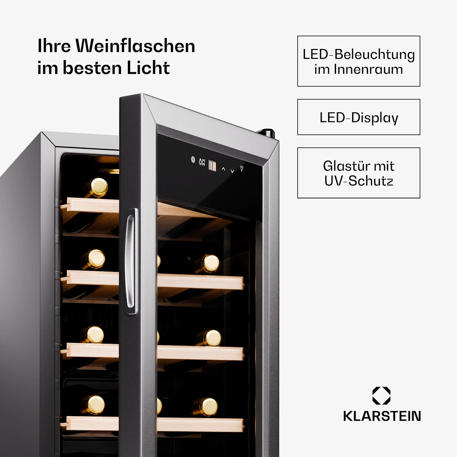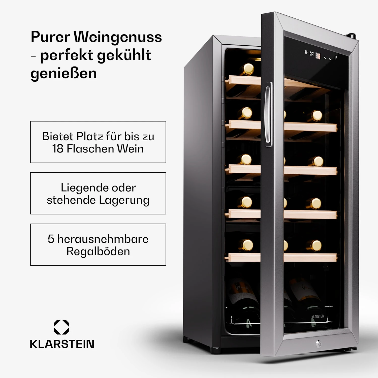- Kapazität für bis zu 18 Flaschen