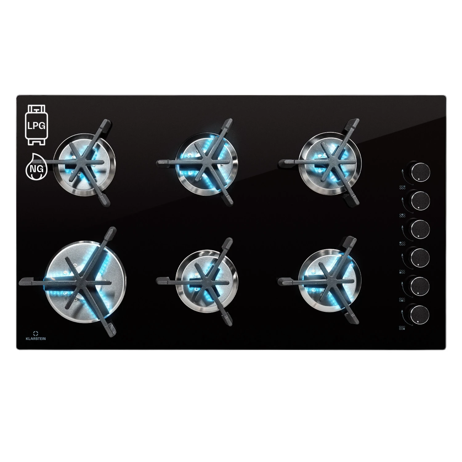 6-fach kraftvoll: Starkbrenner mit 3,2 kW, 2 Normalbrenner mit je 2,1 kW & 3 Hilfsbrenner mit je 1,15 kW