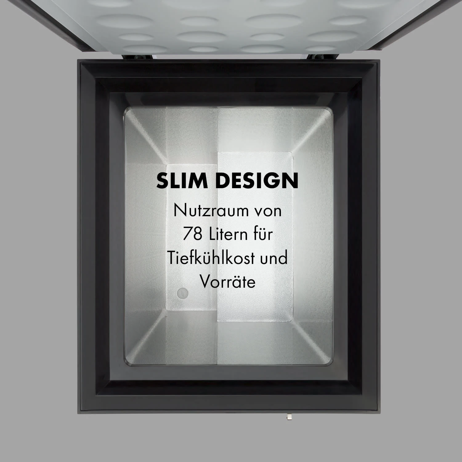 Immer die richtigen Vorräte im Haus: Mit der modernen Klarstein Iceblokk 80 Gefriertruhe kannst du 4 kg Lebensmittel innerhalb von 24 Stunden einfrieren. Dank dem modernen aber schlichtem Design fügt sie sich in jede Küche wunderbar ein.