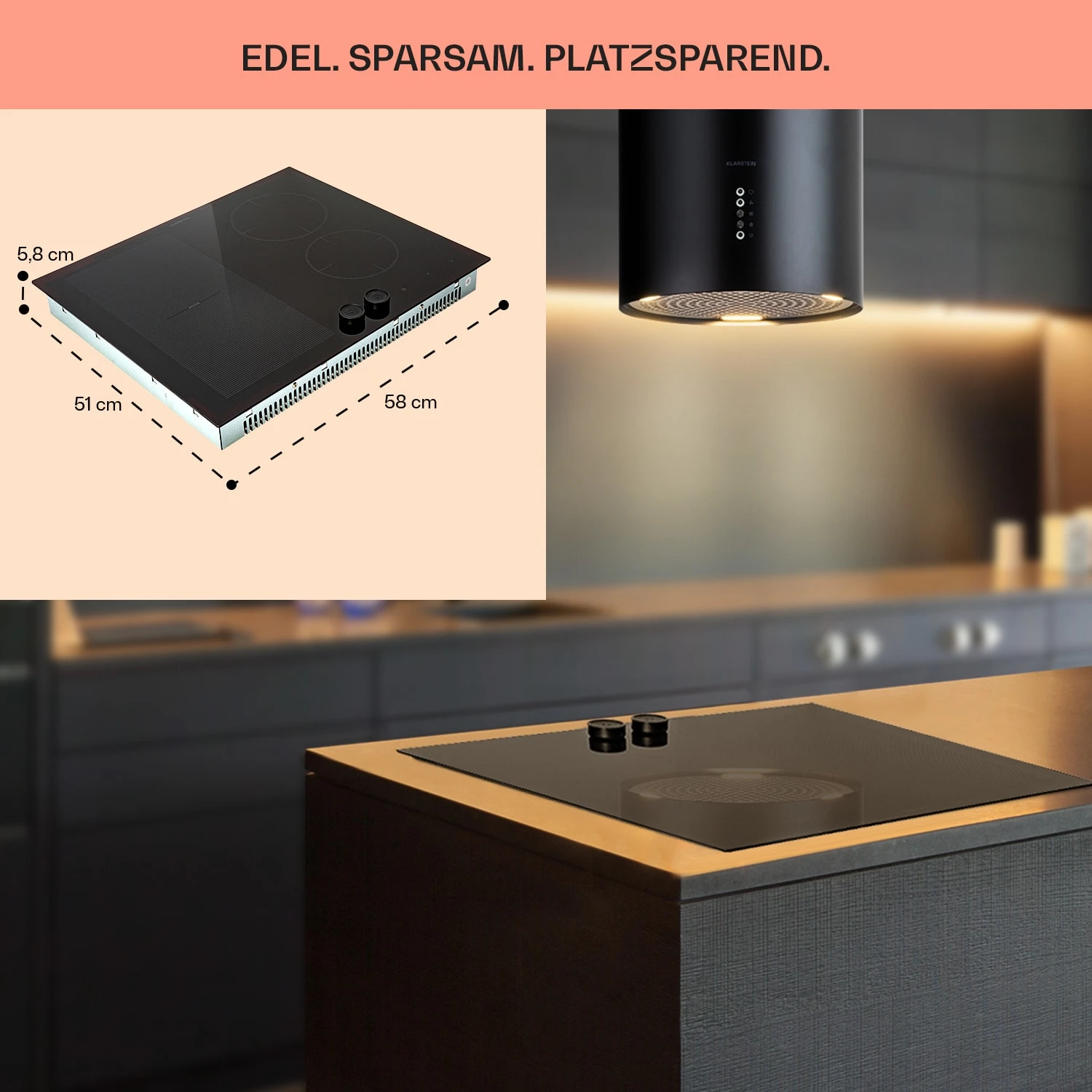Einbau in die Küchenzeile: edles Induktionskochfeld mit Glaskeramik-Oberfläche