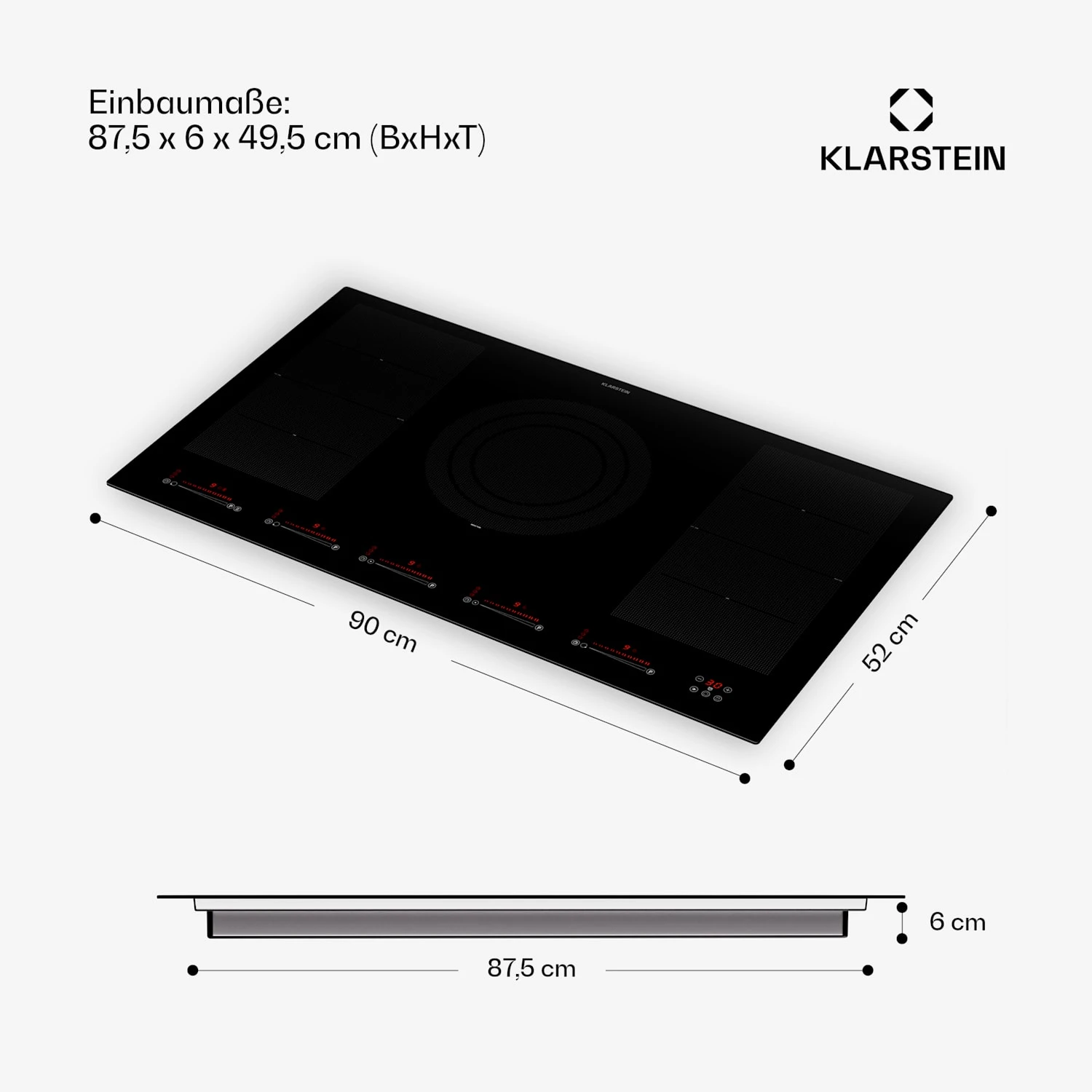 Das elegante Design mit Glaskeramik-Oberfläche fügt sich nicht nur ästhetisch, sondern auch funktional in jede Küche ein. Die Flexzone ermöglicht den Einsatz von größeren Töpfen und Pfannen. Weitere Features wie Pfannensensor, Pausenfunktion und Kindersicherung bieten zusätzlichen Komfort. Kompatibel mit verschiedenen Materialien, jedoch nicht für Aluminium, Kupfer, Glas oder hitzebeständiges Glas geeignet. Das Klarstein Masterzone 90 Flex Induktionskochfeld – eine perfekte Kombination aus Innovation, Leistung und Eleganz für anspruchsvolle Hobbyköche.