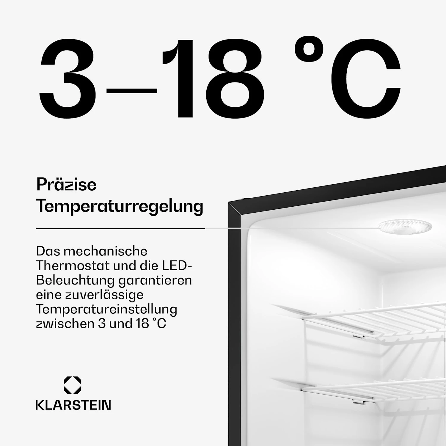 Der Klarstein Matterhorn 44 Kühlschrank bringt Getränke auf ideale Trinktemperaturen und findet dank seiner kompakten Maße überall Platz. Angenehm leise verrichtet er seinen Dienst, denn sein Kühlsystem ist auf dem neuesten Stand der Technik: Per thermoelektrischer Kühlung kommt er mit wenig Aufwand auf angenehm niedrige Kühltemperaturen von 3 bis 18 °C. Auf seinen drei Ebenen beherbergt er Getränke oder Snacks, während im extra großen Türfach sogar Flaschen mit bis zu 2 Liter Inhalt problemlos Platz finden. Und damit alles an seinem Platz bleibt, kannst du die Minibar bei Bedarf auch abschließen.