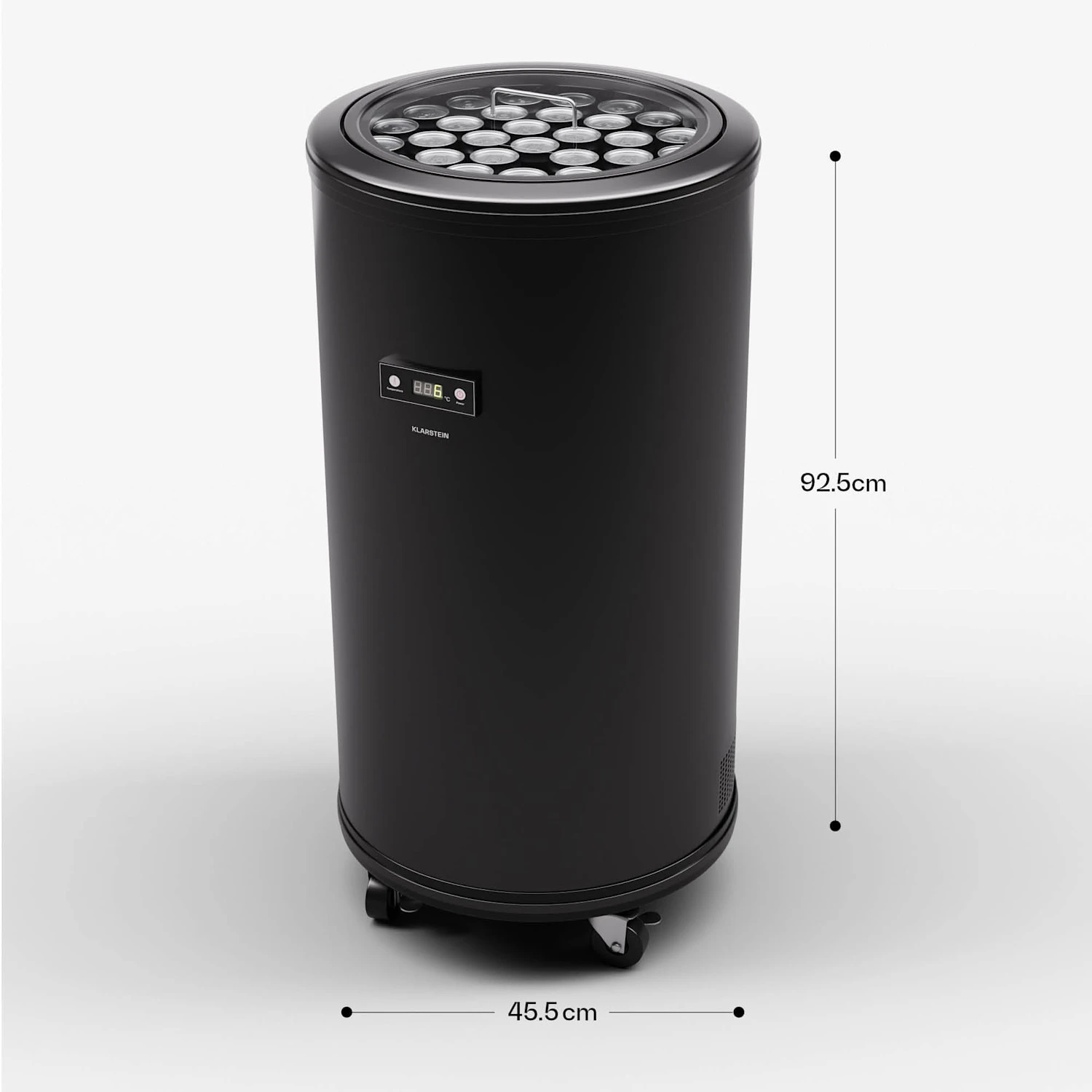 Du kannst den Kühlschrank also jederzeit an seinen Einsatzort rollen und dank 2,6 Meter langem Kabel immer anschließen. Mit dem eleganten Glasdeckel und dem coolen Innenleben wird der Mr. Barbot auch für dich auf jeder Party unverzichtbar.