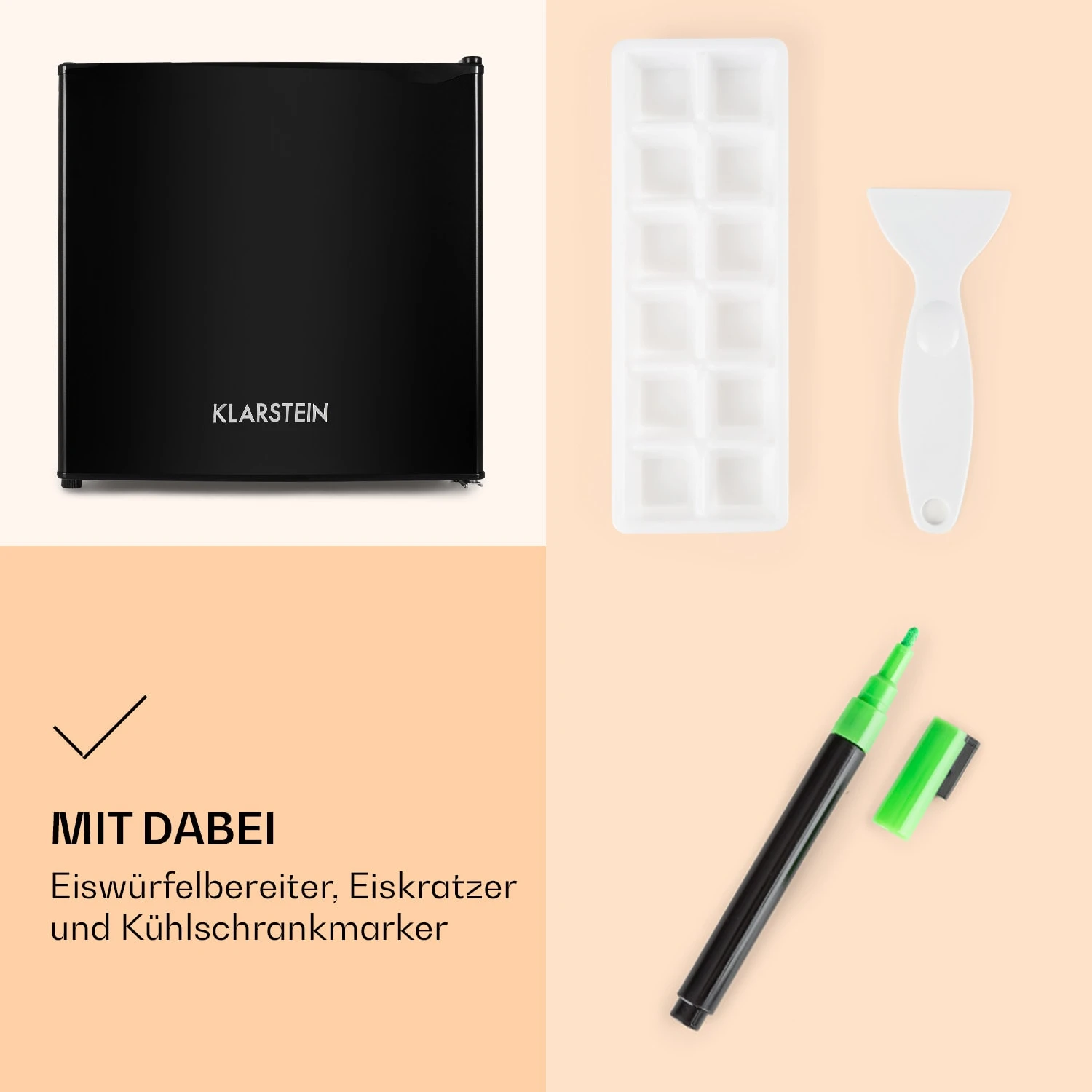 - inkl. Eiswürfelbereiter, Eiskratzer und Kühlschrankmarker