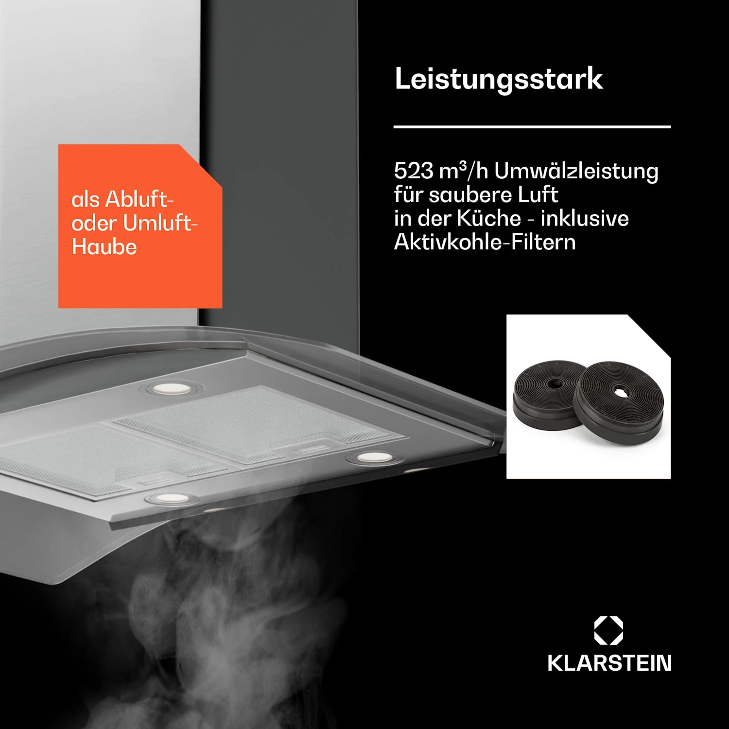 Kraftvoll gegen den Dunst: maximale Abluftleistung bis 523 m3/h