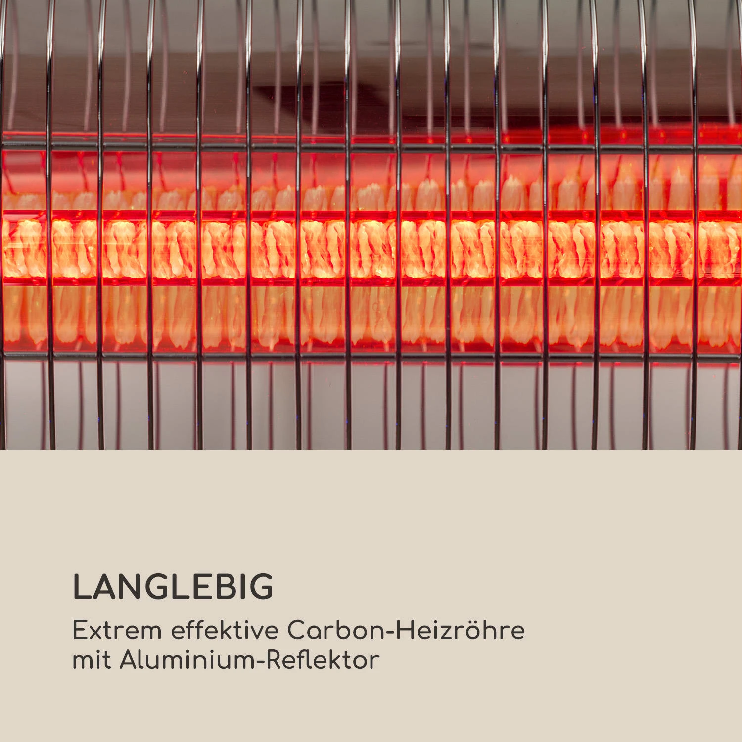 Extrem blendarm: goldbeschichtete Carbonröhre mit MinimalGlare Heating Tube-Technologie für minimale Lichtintensität