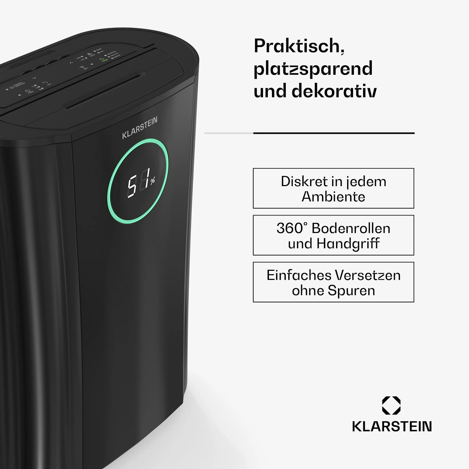Intelligenter Feuchtigkeitssensor: Einstellbar in 5%-Schritten von 40-80% Raumfeuchtigkeit für optimale Leistung