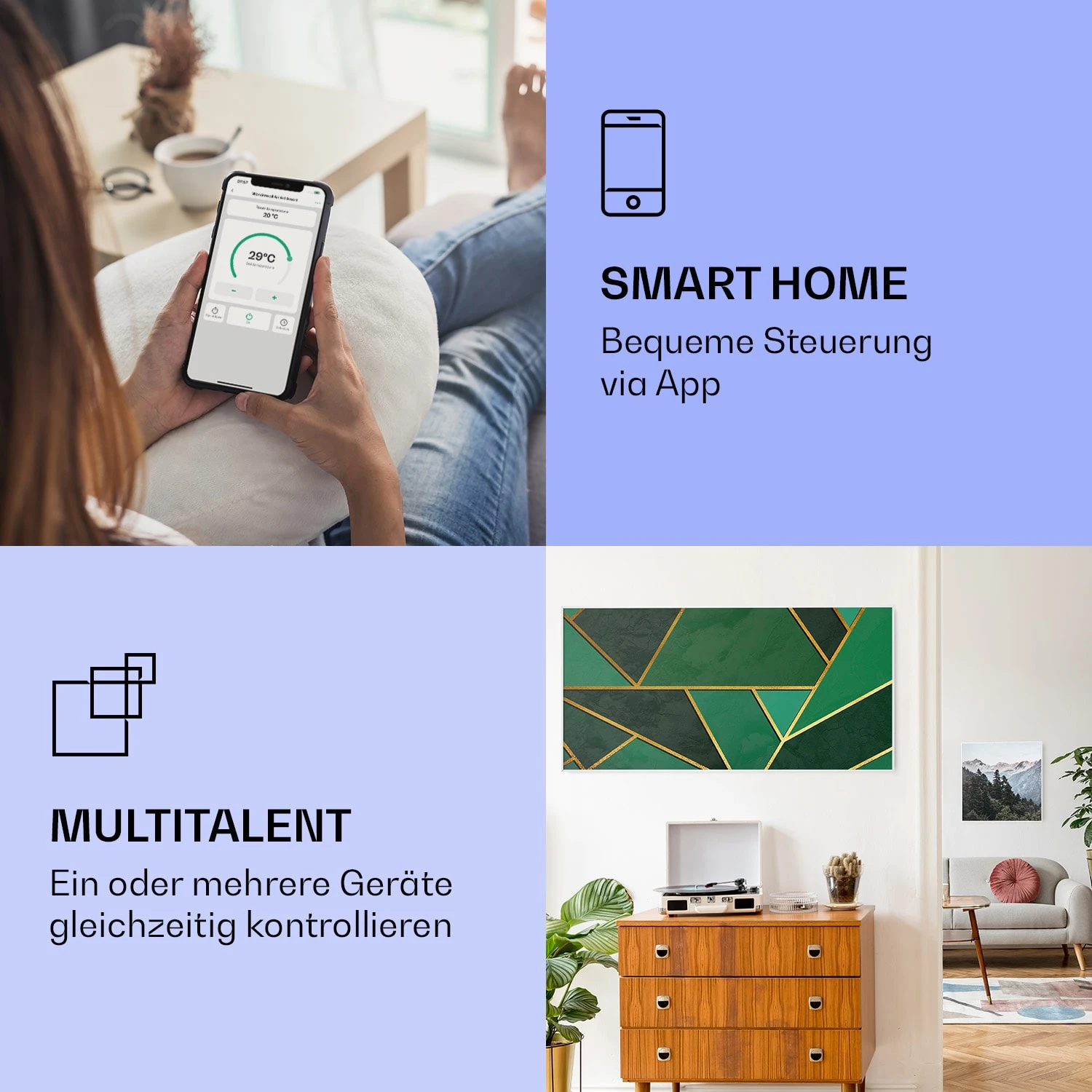 - kombinierbar mit weiteren Panels zur Beheizung größerer Räume
